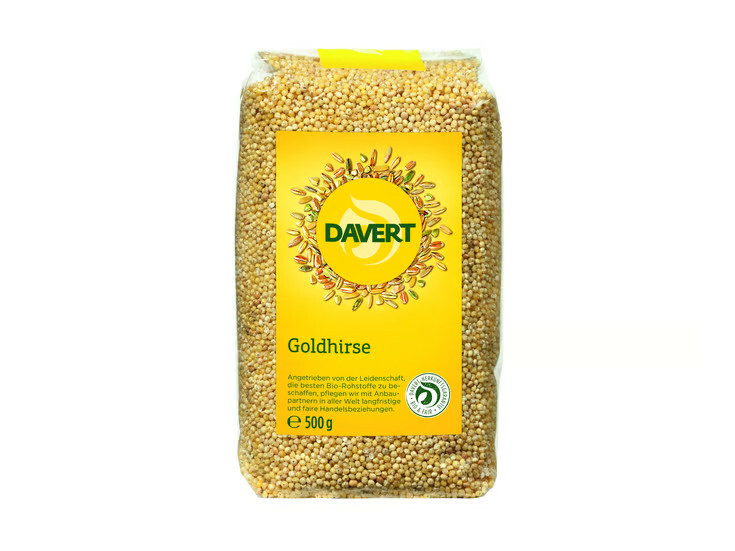 Goldhirse ist eine geschälte, grobkörnige Hirse, die sich sowohl für süße als auch für herzhafte Gerichte eignet