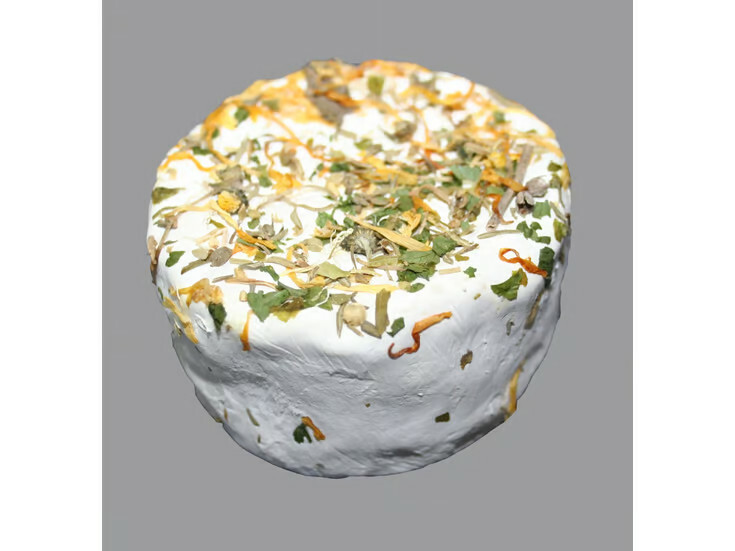 Ein Camembert aus 100% Schafmilch. Die Oberfläche ist mit einer Kräutermischung Ringelblumen und Gänseblümchen veredelt.