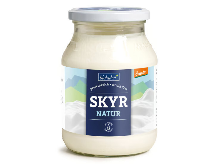Skyr - ein frisches Produkt in Demeter-Qualität im 500-g-Mehrwegglas - enthält wenig Fett und ist eiweißreich. Der Skyr überzeugt mit angenehm säuerlichem Geschmack und einer Konsistenz zwischen Joghurt und Magerquark. Lebensmittelrechtlich wird der Skyr als Frischkäse betrachtet.